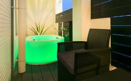 バスタブが青、赤、緑の3色に光り、幻想的な雰囲気を醸し出します。